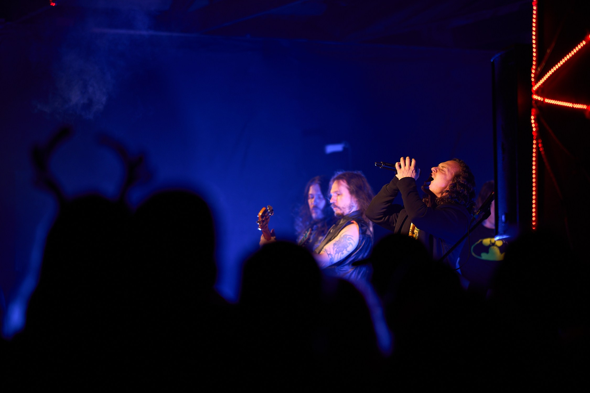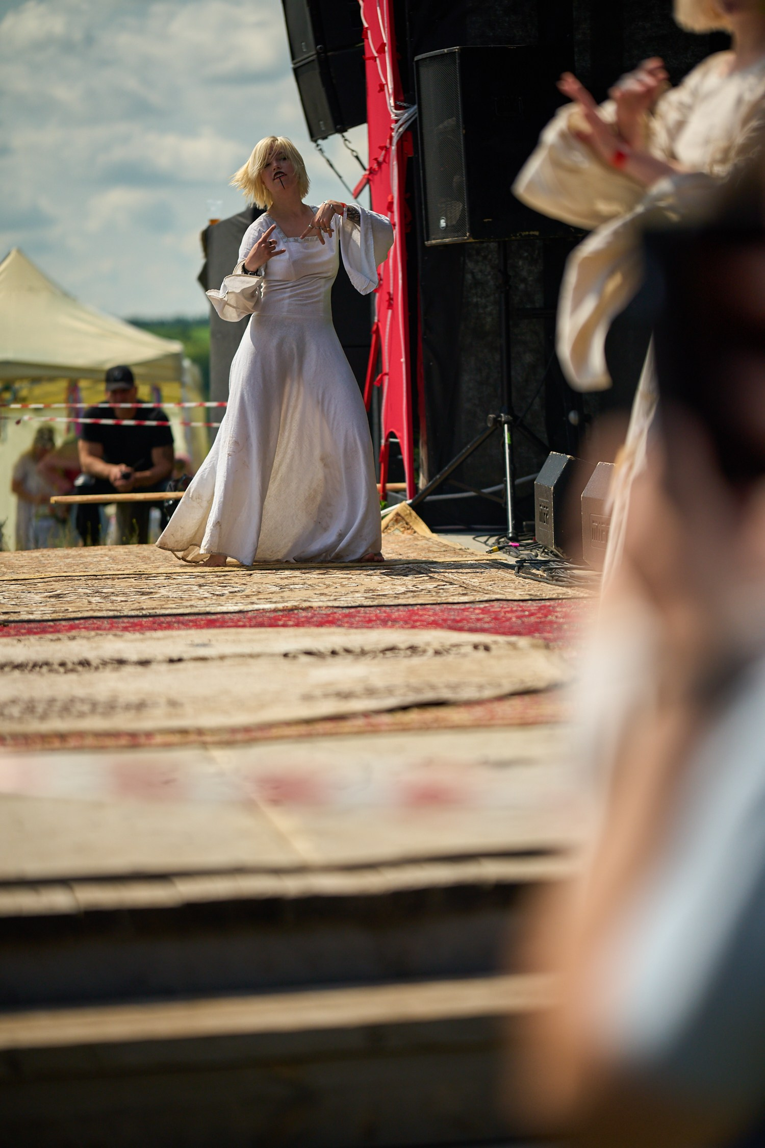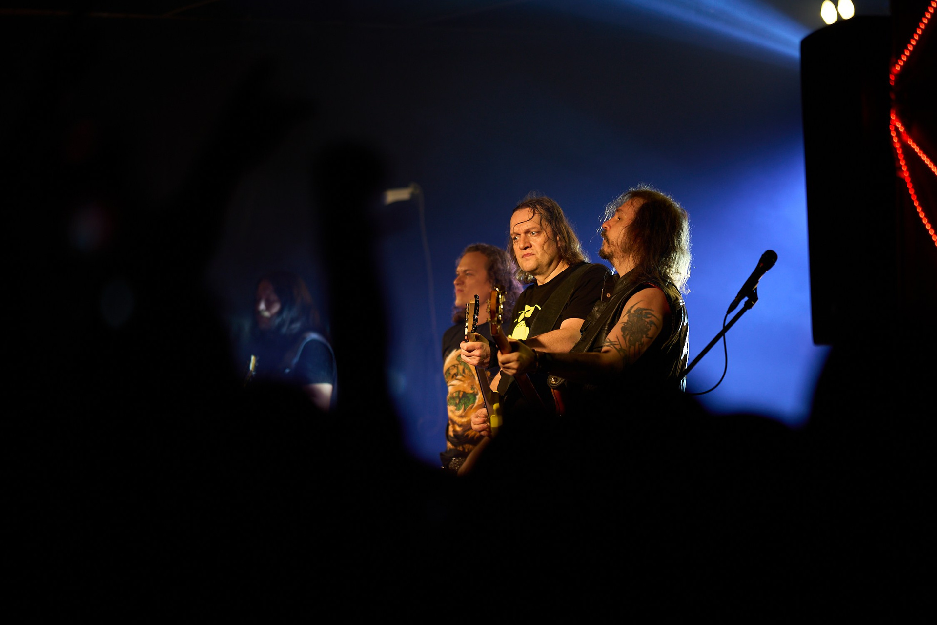 О-о-о, а вот и открытие как минимум полугодия - GroTTesque. Я их начало слушал вообще из лагеря, но как до ушей долетели плотные мясистые риффы, пошёл проведать сцену. А там такое шоу!