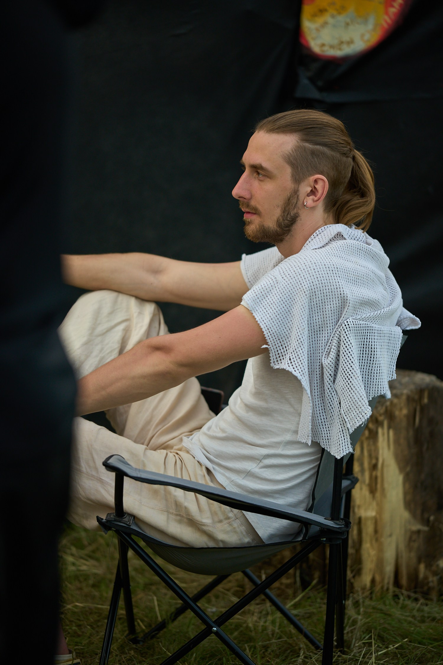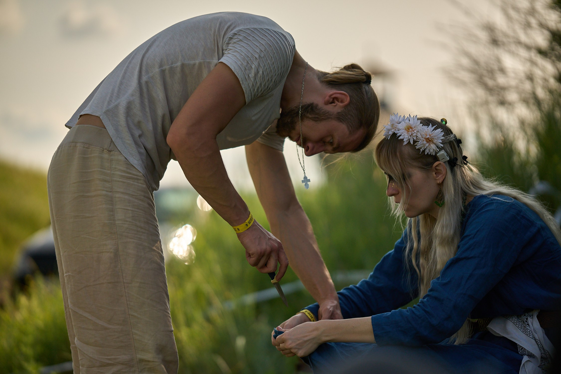 Возвращаемся в лагерь. Не беспокойтесь, он не её режет, а платье. Подготовка к фотосессии. Но те фото я наверно не покажу, или чуть позже.